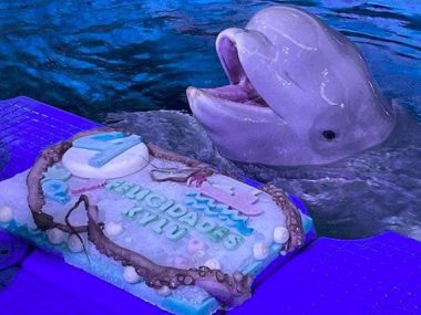 El bebé beluga Kylu cumple cuatro con una fiesta y con una tarta especial