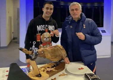 El buen rollo reina en el Tottenham: Mourinho le regala un jamón a Reguilón
