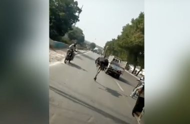 Graban una avestruz corriendo por las calles tras escapase de un zoo