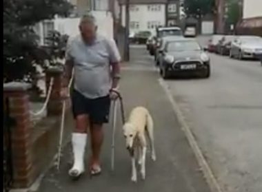 Un hombre con la pierna rota se gasta más de 300 euros en examinar la cojera de su perro y descubre que solo le imitaba