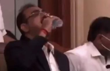 Un funcionario se bebe el gel antibacterias pensando que era agua en plena rueda de prensa