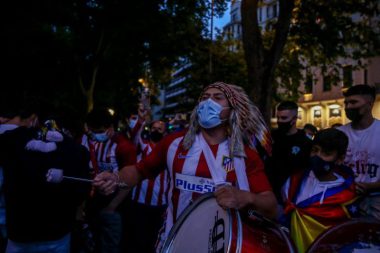Más de 2.500 hinchas del Atlético se reunieron anoche en Neptuno para celebrar la victoria sin apenas incidentes