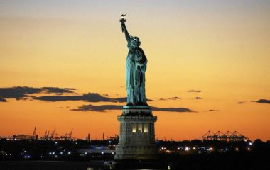 El impresionante momento en que la superluna de sangre iluminó la Estatua de la Libertad