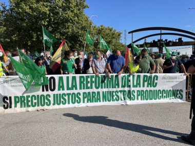 Agricultores piden con cencerros a Planas en Zafra (Badajoz) una PAC «sin recortes»