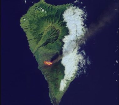 La lava, vista desde el espacio sobre la superficie de La Palma