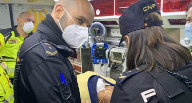 Una mujer de a luz en la calle de camino al hospital asistida por dos policías en Puente de Vallecas