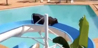 Un buey se escapa del matadero y acaba atascado en un tobogán acuático
