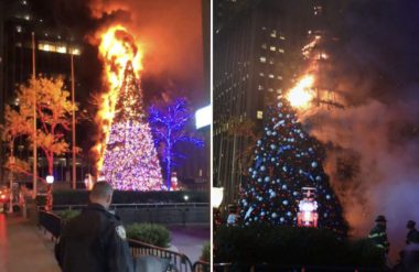 Prenden fuego al árbol de Navidad junto a la Fox News en Nueva York