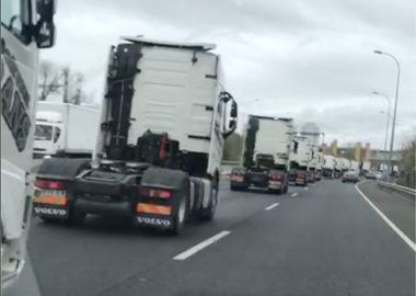 La impresionante cola de camiones grabada en Coslada (Madrid)