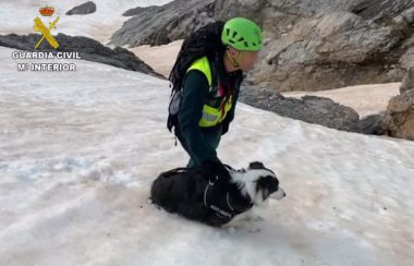 Rescatan a un perro atrapado en un nevero en Picos de Europa