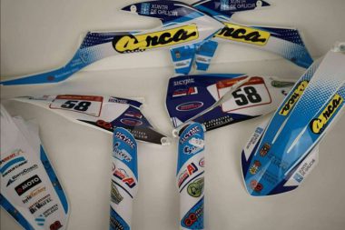 Plásticos y adhesivos para motos off road, con ADHESIVOSEMBARRADOS