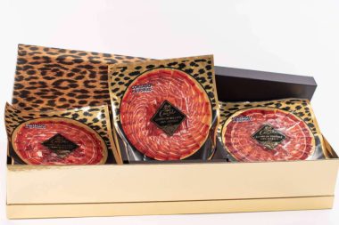 Maestros Jamoneros y sus lotes de Jamón de Bellota ibéricos cortados a cuchillo, uno de los regalos corporativos más buscados para esta Navidad