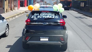 Celebra su divorcio paseando en un coche decorado para la ocasión