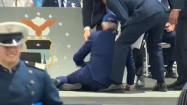 Joe Biden se tropieza y cae al suelo durante una ceremonia