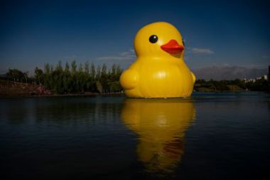 Tres hombres son arrastrados mar adentro abordo de un pato inflable gigante