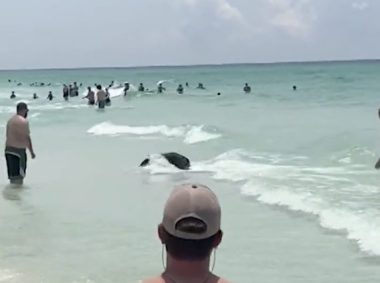 Oso negro sorprende a loa bañistas tras aparecer nadando en una playa