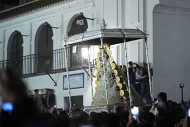 La Virgen del Rocío procesiona por la aldea tras el tradicional salto a la reja