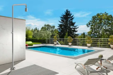 El modelo POOL, ducha de exterior de Imex, proporciona sofisticación y durabilidad a partes iguales