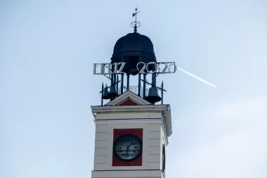 El reloj de la Real Casa de Correos de Madrid estrena nuevo cartel luminoso para dar la bienvenida al 2025