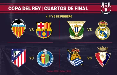 Leganés-Real Madrid, Valencia-Barça y Atlético-Getafe en cuartos de la Copa del Rey