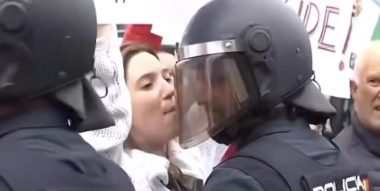 El filtreo entre una manifestante propalestina y un policía antidisturbios