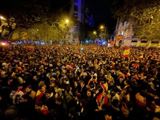 Unas 8.000 personas se concentraron el jueves en las inmediaciones de la sede socialista en el marco de unas protestas contra la amnistía que han alcanzado su jornada de mayor afluencia coincidiendo con el acuerdo alcanzado por el PSOE y Junts.