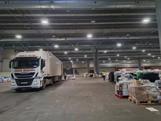 Por otro lado, para la recepción específica de la ayuda proveniente de la capital, se ha contado con la colaboración de Ifema Madrid, que ha cedido uno de sus pabellones. Las últimas incorporaciones de almacenes, en el día de hoy, corresponden a instalaciones del BOE y del Instituto Nacional de Técnica Aeroespacial ayer miércoles.