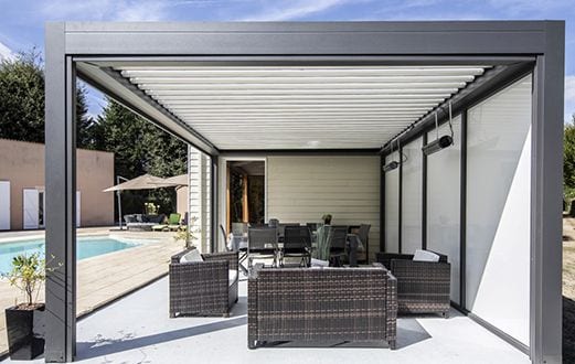 Abrisud presenta 3 nuevos diseños de pérgolas bioclimáticas modulables, desarrolladas junto al especialista Akena, que permiten graduar la exposición solar.