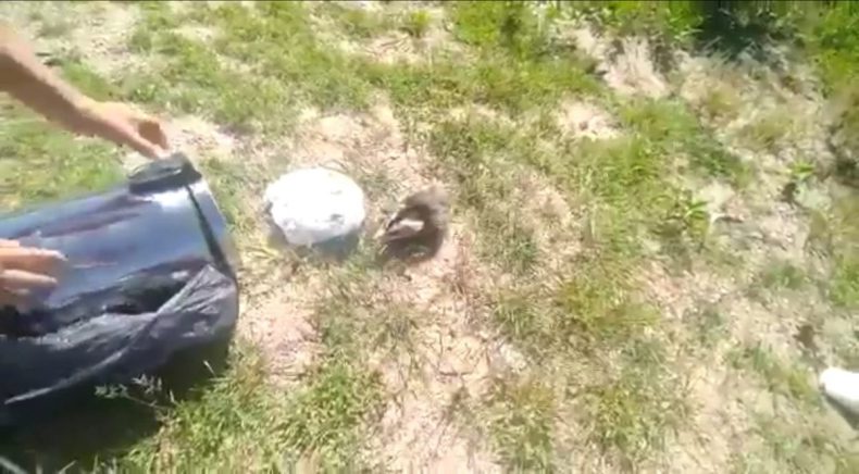 “Liberación de fauna silvestre», dice uno de ellos mientras libera al animal en campo abierto. Sin embargo, la zarigúella, en vez de correr hacia los arbustos intenta cruzar una carretera.