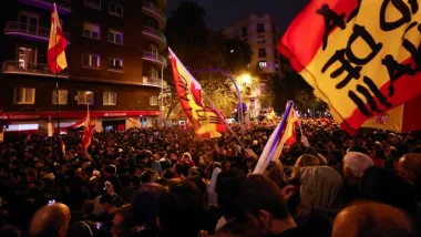 La octava noche de protestas en Ferraz se salda con un detenido y un periodista herido