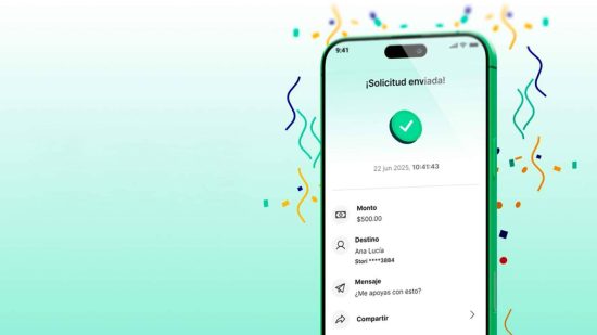 Solicitar Transferencias tiene un diseño amigable donde se selecciona el contacto, se elige el monto a cobrar y se agrega el concepto. El contacto que recibe la solicitud, debe revisar toda la información, si la acepta, proporcionará su autenticación biométrica para mayor seguridad. Esta nueva función cuenta con notificaciones en tiempo real y un historial de solicitudes pendientes y completadas.