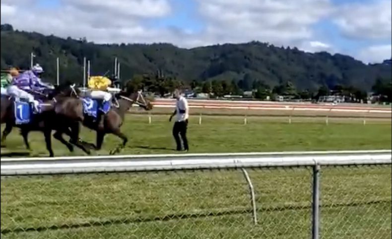 La tragedia se mascó el pasado sábado durante la Copa Wellington, celebrada en el hipódromo de Auckland (Nueva Zelanda), cuando un aficionado entró en la pista y se puso delante de los jockeys que corrían a lomos de sus caballos.