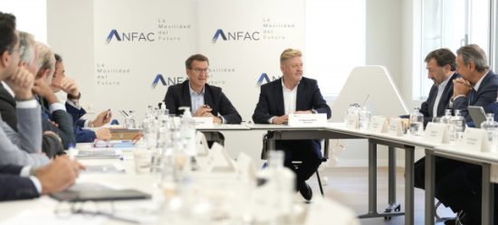 El presidente de la Asociación Española de Fabricantes de Automóviles y Camiones, ANFAC, Wayne Griffiths, junto con la Junta Directiva de la asociación han recibido al presidente del Partido Popular y candidato a la presidenta, Alberto Núñez Feijóo, que ha participado en la sesión celebrada en las oficinas de ANFAC.