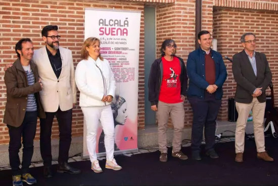 En la rueda de prensa, Santiago Alonso, concejal de Cultura de Alcalá de Henares, destacó que Alcalá Suena se ha convertido “en un referente entre los festivales gratuitos de la Comunidad de Madrid”. En la foto se puede ver, de izquierda a derecha, a Dr. Sapo (ganador de la categoría infantil/familiar), Santiago Alonso (concejal cultura), Isabel Ruiz Maldonado (1º teniente de Alcaldía), César Gallego (presidente Alcalá es Música), Antonio Saldaña (concejal de festejos) y Teófilo Lozano (concejal de Salud).
