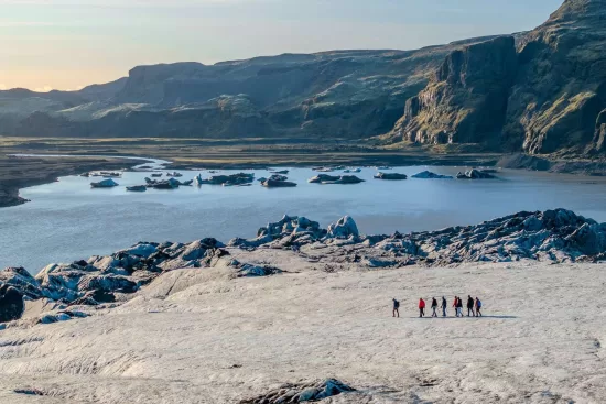 Los dos días siguientes, el grupo no solo puede disfrutar de las luces coloridas de la noche, sino que, durante la mañana y parte de la tarde, la agencia dispone de excursiones increíbles como la cueva de hielo en el glaciar Vatnajökull, la laguna glaciar de Jökulsárlón con sus icebergs, la Playa de diamantes, la laguna glaciar de Fjallsárlón y el parque nacional de Skaftafell.