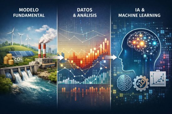 AleaSoft Energy Forecasting, marzo de 2026. En los mercados eléctricos, muchos modelos fundamentales fallan no por la física del sistema, sino por no reproducir el equilibrio real que fija el precio. Un enfoque híbrido que combina estructura fundamental con modelos estadísticos, Inteligencia Artificial y Machine Learning permite capturar dinámicas temporales, no linealidades y cambios de régimen, mejorando la señal de precio y su distribución para decisiones de inversión y cobertura.