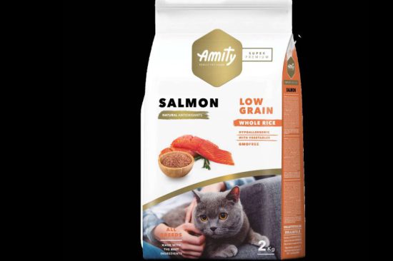 Amity Super Premium está disponible en sabor salmón que es una fuente natural de ácidos grasos Omega 3 y 6, que actúan directamente sobre el sistema inmunológico, nervioso, cardiovascular y en general mejoran el metabolismo del gato. También se distingue según la etapa vital o el formato: Se encuentran en formato de 2 kg para la etapa Kitten (hasta los 12 meses) y en formato de 2 y 7 kg tanto para gatos adultos como para gatos adultos esterilizados.