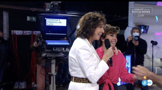 La periodista Ana Rosa Quintana reapareció públicamente, tras haber anunciado que se alejaba temporalmente de la televisión, en el programa de su compañera de Mediaset Sonsoles Ónega.