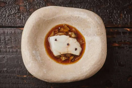 Su propuesta, repleta de reminiscencias gastronómicas, se impregna de palabras castellanas y castizas; taberna, labranza, caza, e incluye entrantes con ingredientes tan variopintos como el foie, el caviar, o la trufa y un sinfín de platos del propio repertorio del menú Ancestral como el ciervo a la brasa, su famoso escabeche (mejor escabeche de España 2022) o su maravilloso bacalao.