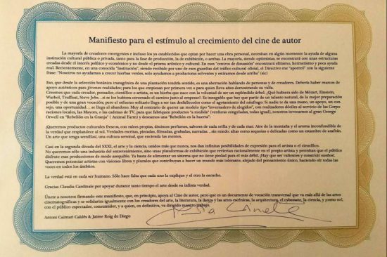 En la primera edición del festival de Palma de Mallorca Films infest (2017), hubo muchos artistas de renombre que firmaron el documento. Una de las primeras en hacerlo y amadrinar el manifiesto fue la actriz italiana Claudia Cardinale, posteriormente lo hicieron Ventura Pons y Laura Zapata. Impulsados por este manifiesto, en muchos lugares comenzaron a realizarse festivales de cine con el propósito de apoyar a los nuevos creadores y promocionar su arte ante la falta de apoyo de algunas instituciones públicas y privadas.