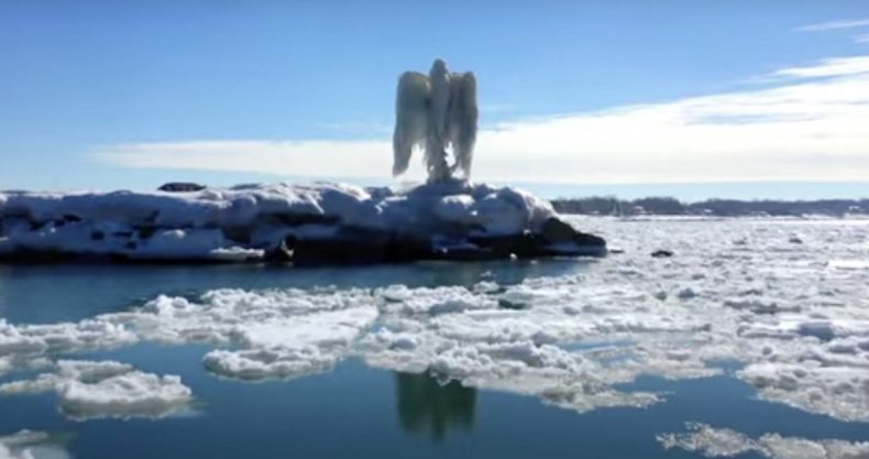 Los vecinos de la ciudad de New Buffalo se toparon a la orillas del lago, en la desembocadura del río Galien y el lago New Buffalo, con una misteriosa figura de hielo, la cual tenía la forma de un ángel con las alas extendidas y que precisamente apareció en este lugar tras las heladas que han azotado en varias regiones de Estados Unidos.