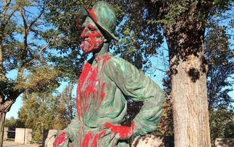 Todas las esculturas han sido atacadas con pintura roja durante la noche de este lunes al martes.