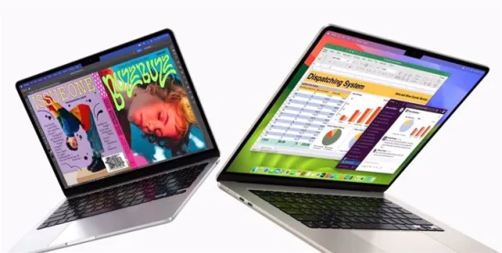 El ordenador en sus dos tamaños equipa una pantalla Liquid Retina con hasta 500 nits de brillo que admite mil millones de colores. Admiten la conexión de dos monitores externos con la tapa del portátil cerrada y soporte para WiFi 6E, además de un puerto de carga MagSafe, dos puertos Thunderbolt para accesorios y una toma para auriculares de 3,5 mm.