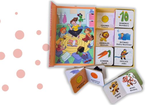 Estos minilibros, fabricados en cartón grueso y con esquinas redondeadas, están diseñados para ser seguros, resistentes y fáciles de manipular para manos pequeñas. Cada uno aborda una temática distinta y cercana al día a día: los colores, los números, los animales, las rutinas, la comida y los oficios. Además, todo el set viene en una caja práctica que incluye un puzle para seguir aprendiendo de forma divertida.