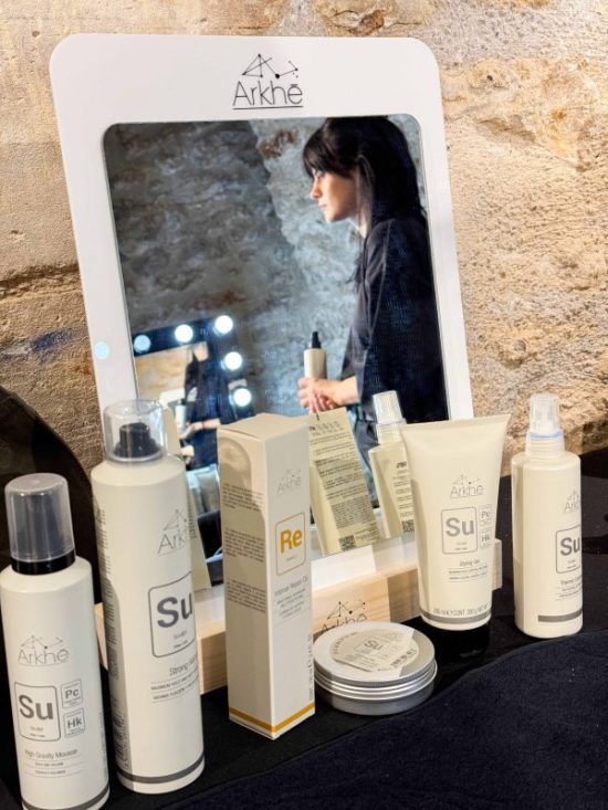 La colaboración entre Arkhé Cosmetics y Sonia Carrasco representa una unión de valores compartidos: creatividad, sostenibilidad y compromiso con la excelencia. La firma de cosmética capilar premium utilizó productos de origen natural y fórmulas innovadoras para garantizar resultados impecables, alineados con las exigencias del desfile.
