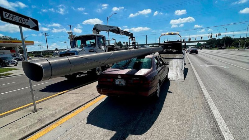 Douglas Allen Hatley, de 71 años, fue detenido en una carretera de Tampa el lunes después de que otro conductor informara que un Toyota estaba trasladando un poste de luz de grandes dimensiones, informó la Patrulla de Carreteras de Florida.