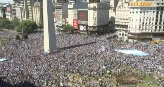 El lugar de reunión para los argentinos en la capital es el Obelisco, monumento céntrico que se llenó de aficionados felices.