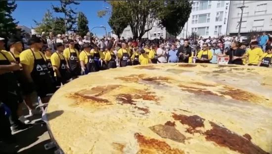 Se llevó a cabo en la localidad de Melide y, para ello, se emplearon 1.700 kilos de patatas, 300 litros de aceite, 30 kilos de sal y 15.000 huevos camperos. Proeza ingenieril.