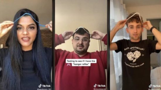 Se trata de ‘El desafío de la percha’, que consiste en que los participantes se colocan una en la cabeza y esperan que se produza un giro reflejo del cuello hacia uno de los lados