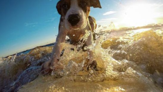 Una veintena de perros mostraron este fin de semana su habilidad para coger olas en el primer Campeonato Europeo de Surf Canino (European Dog Surf Championship), celebrado en la playa de Salinas, en Castrillón (Asturias).